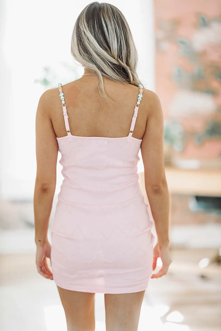 Be the “It Girl” in this baby pink, 100% cotton cute dress for women. This is the definition of spring and summer with the beaded straps and color! This dress is stretchy and form fitting. Grab this for upcoming spring events, summer nights and vacation.