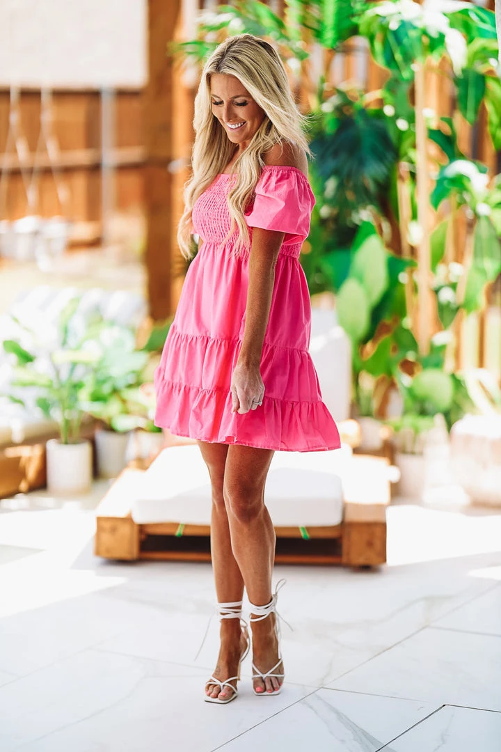 This pop of pink is the pop of pretty you need for a cute dress for spring and summer. Wear this on or off the shoulders. It’s flowy and has an elastic band in the bust. The tiered hemline ruffles add the daintiest detail to this pink perfection of a dress. We LOVE this for brunch dates, lunch dates and all the dates. Pack this pink boutique dress for vacation, too! We can never take enough dresses on vacation. Right! A dress you need for sorority rush recruitment!