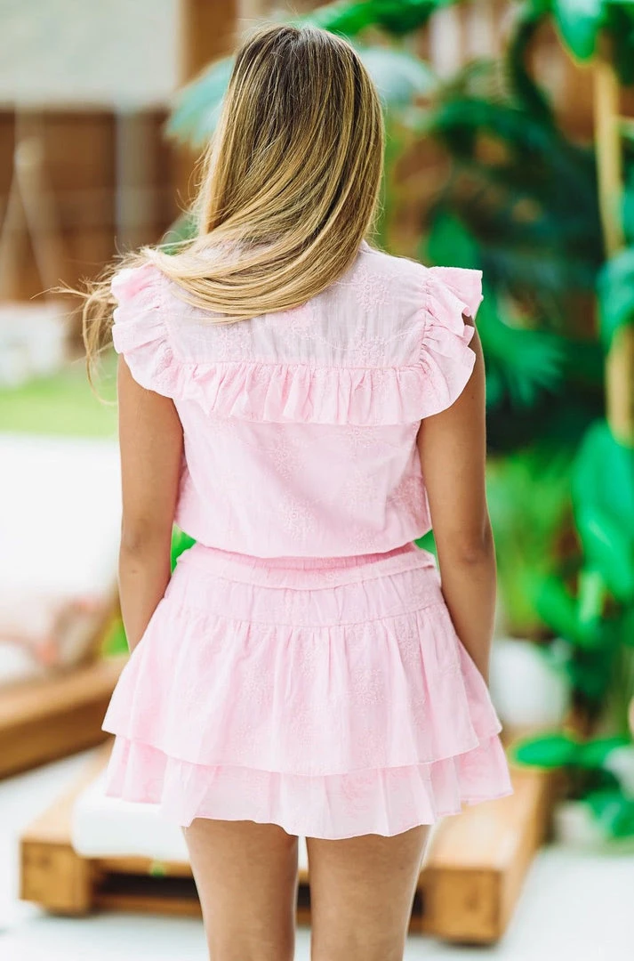 Feeling a little fancy and like it’s meant to be in this pink mini dress! We are in LOVE with this designer dupe. It’s dreamy. It’s pink. It’s perfect. It is a 100% cotton dress with ruffles, an elastic band at the waist and lined with shorts.