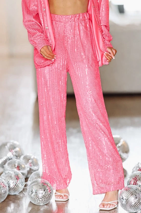Our “Worth a Shot” Pants are worth EVERY shot! They are elastic waist, flowy and full of sequins. This three piece women’s set isn’t complete without the pants. All the celebrations is sequins are just more fun.