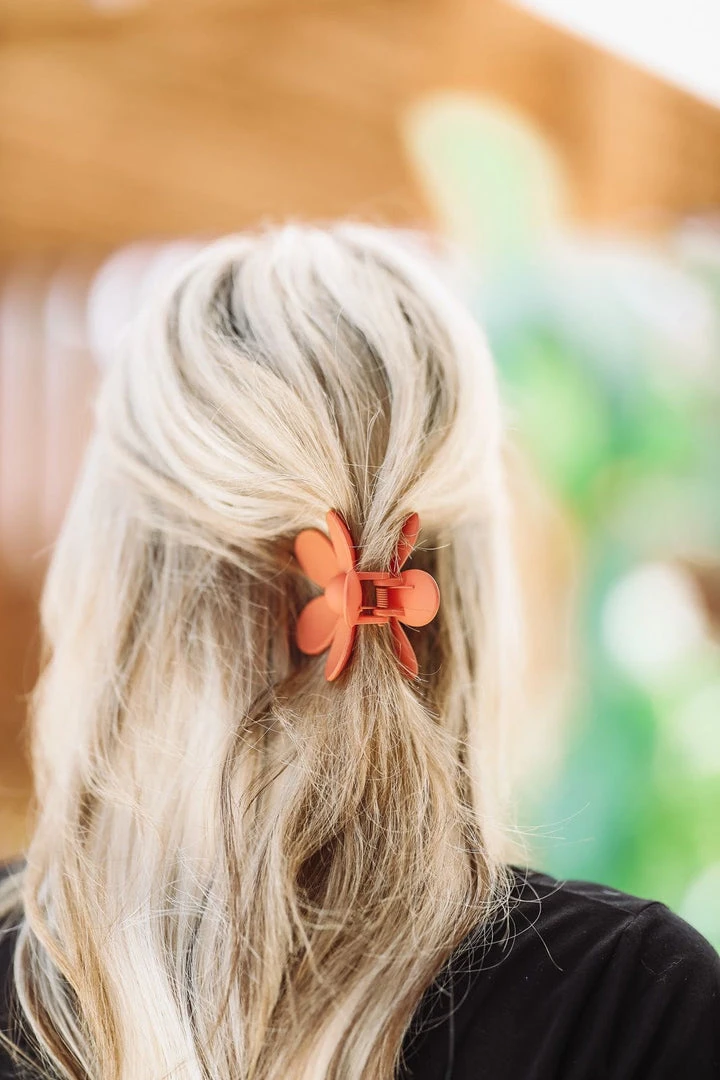 Our You’re a Daisy hair clip is perfect for summer hair! We have 4 colors: Rust, Blue, Light Pink and Cream